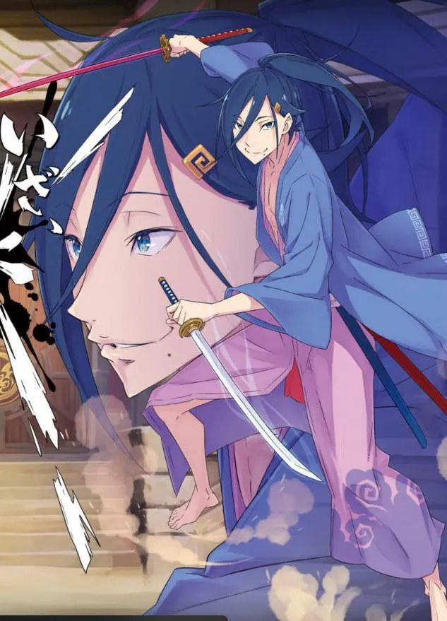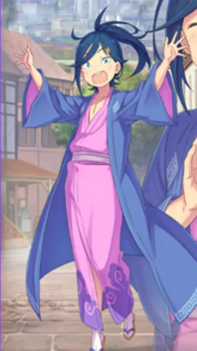 セシルスは青い髪と整った顔立ちが特徴的な青年で、カララギ風の着物と二振りの刀を愛用しています。
