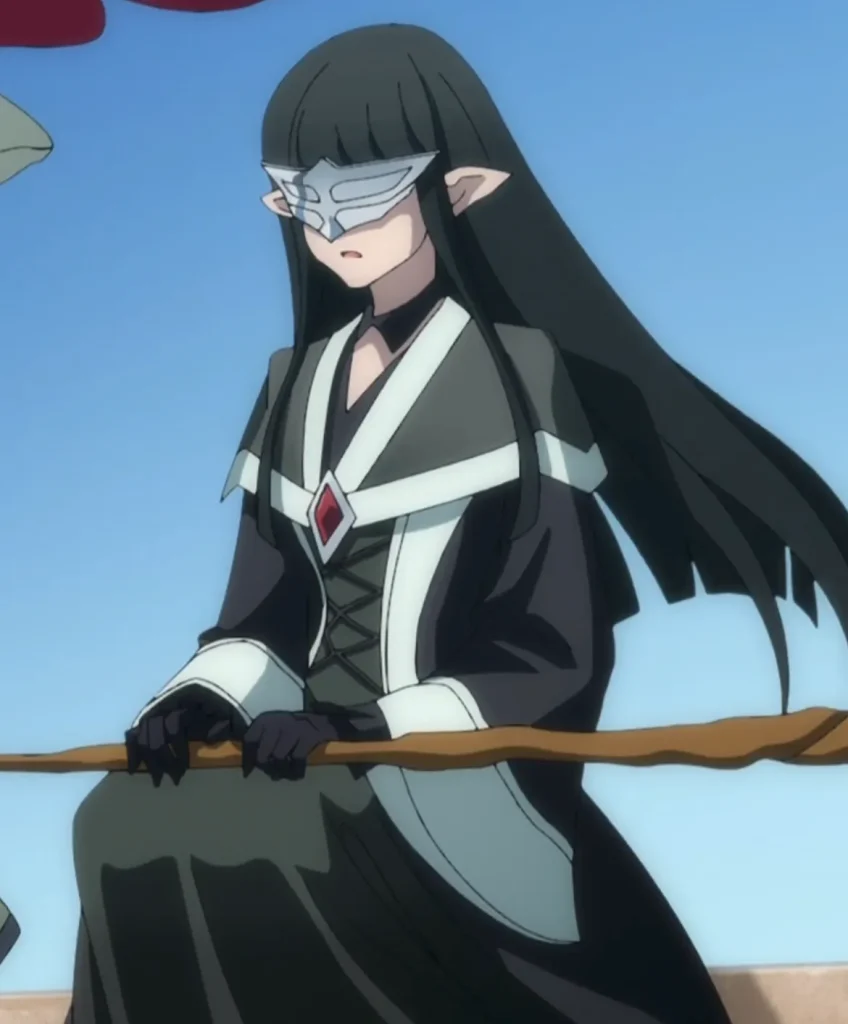仮面で目元を隠した黒髪が特徴で、レフィーヤと共にエルフの王女を公私共に支えています。