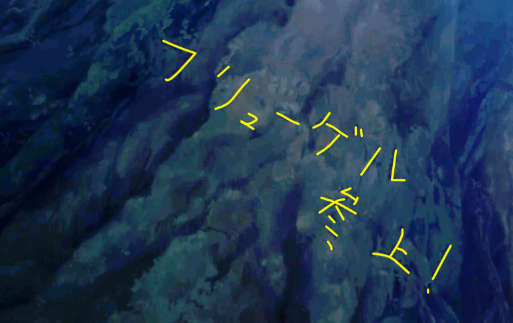 「フリューゲル参上」の落書きがアニメで確認できるのは、アニメ1期新編集版19話『白鯨攻略戦』の16分50秒あたりです。